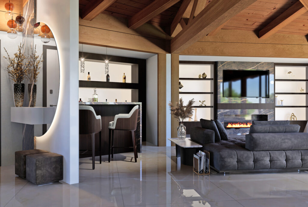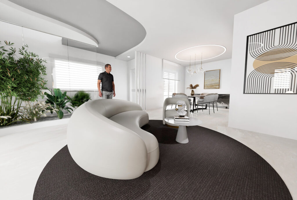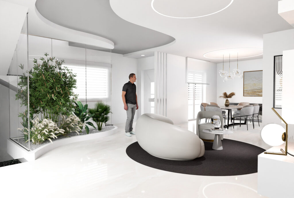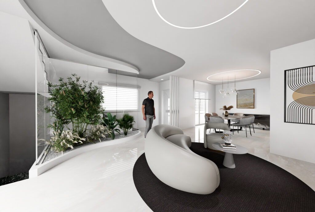 Progetto realizzato per la Artech srl, si tratta di una parziale ristrutturazione che ha il living come zona di intervento. In questo progetto la controsoffittatura a diamante è stata studiata per compensare l’eccessiva profondità delle travi, difatti, una semplice veletta avrebbe messo in evidenza il salto di quota, in questo modo lo accompagna creando un gioco di luci e ombre che esalta il difetto trasformandolo in pregio.